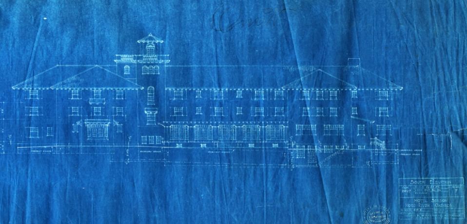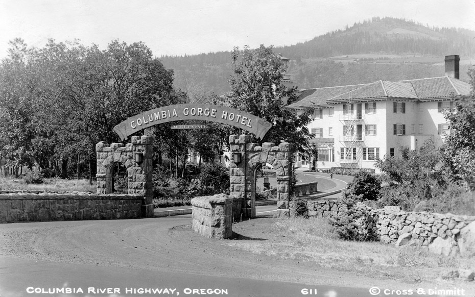 A historic photo of the Columbia Gorge Hotel.